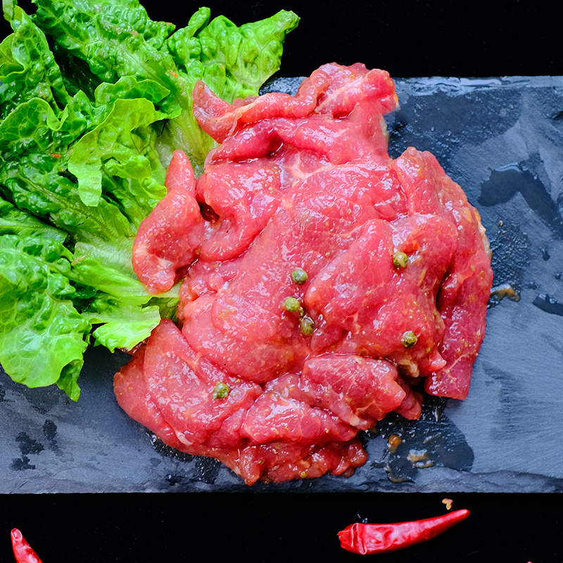 牛后腿肉切片切粒,腌制,速冻。适用中餐、火锅、串串、烧烤。